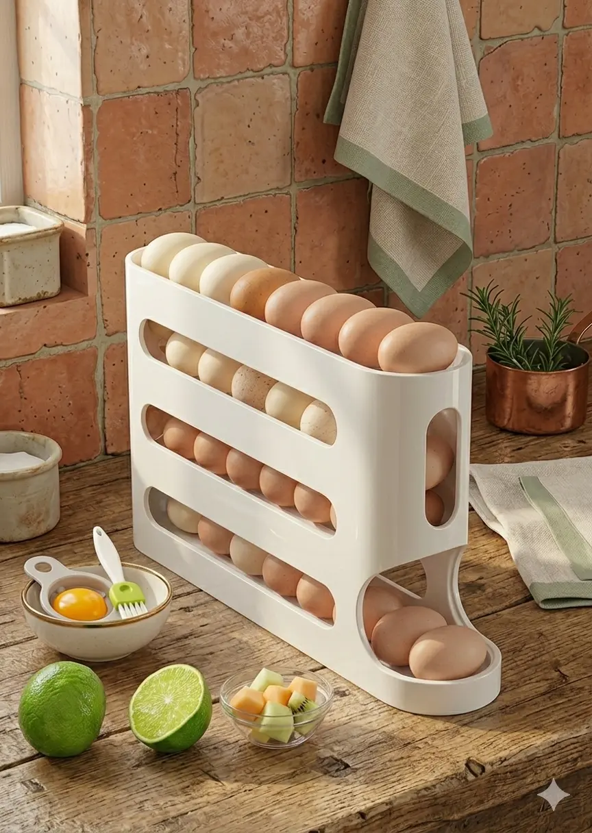 Entra hasta 30 huevos, ocupa poco espacio y mantiene todo limpio y a mano.